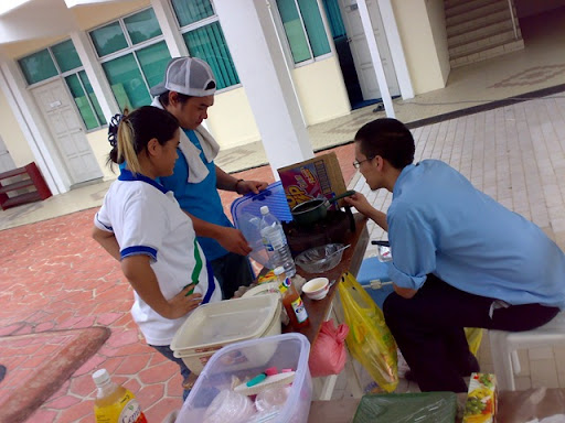 It was a cold cold day... n aku damam.. but then i want to join the business project for the consultation day. sorry guys i cant join u guys as frontliners.. takut jadi penyebar virus thru food.. so all i did was taking pics, sit down, sneezing, sniffing, and try to heat up myself.