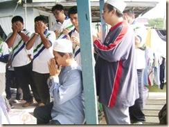As we reached there, we recite Tahlil under a provided hut, coz the surrounding areas on the cemetery was full of tall grasses. After that we move on with our main objective, which is "menyiangi kubur". i tell you.. with such a large piece of land which full of tall grasses and no lawnmower around (s that means we used "Parang" instead) it's a huge task to be handled.. thank god it was 2 groups project and some more volunteers such as Milla, Sheila, Krol, Sham & Wali joined in, as well as some of the local villagers. (Thanx Guys)